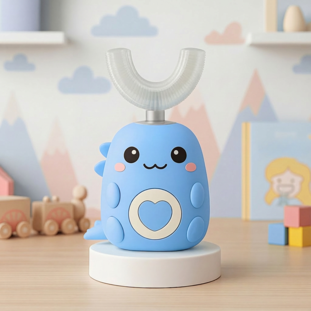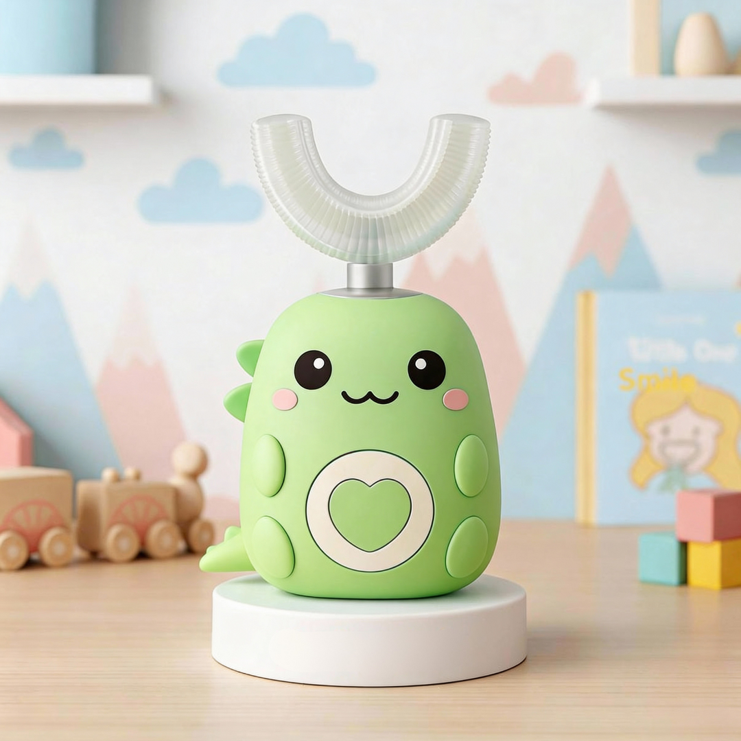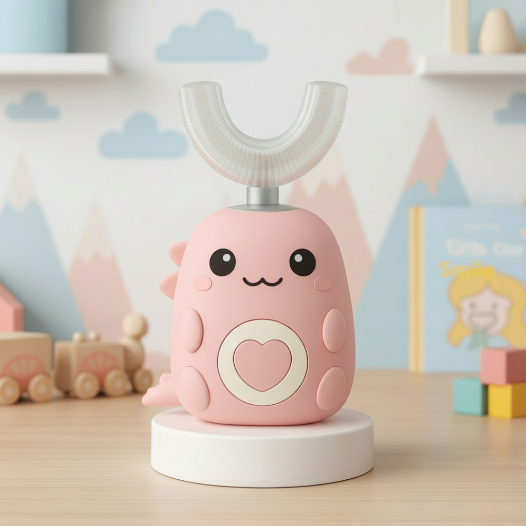 De zachte U-vorm reinigt alle tandjes tegelijk, zonder pijn of gedoe. De sonische technologie zorgt voor een diepe reiniging, terwijl gevoelige borstelharen het tandvlees beschermen. Dankzij de ingebouwde timer wordt altijd lang genoeg gepoetst — zonder dat jij hoeft mee te kijken.