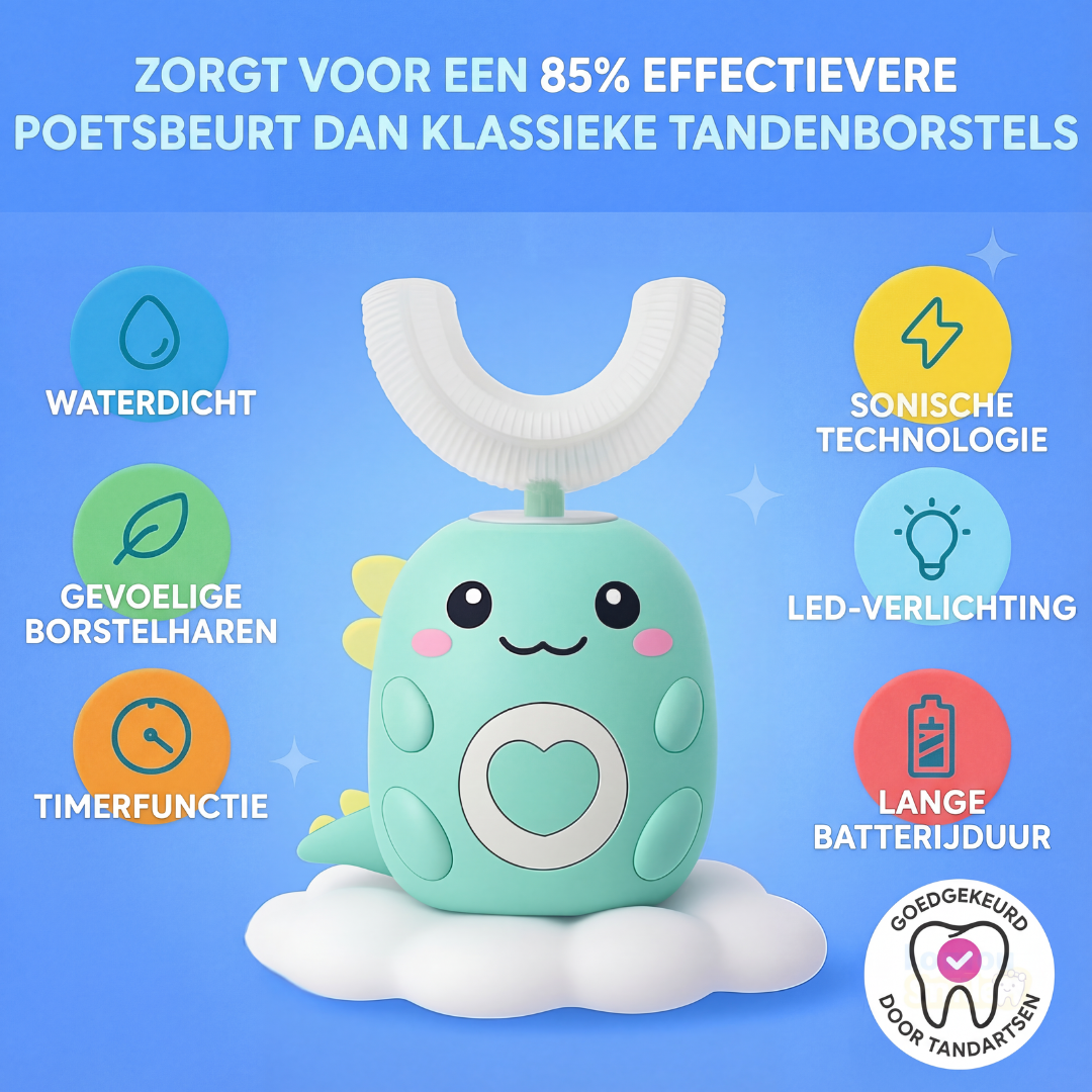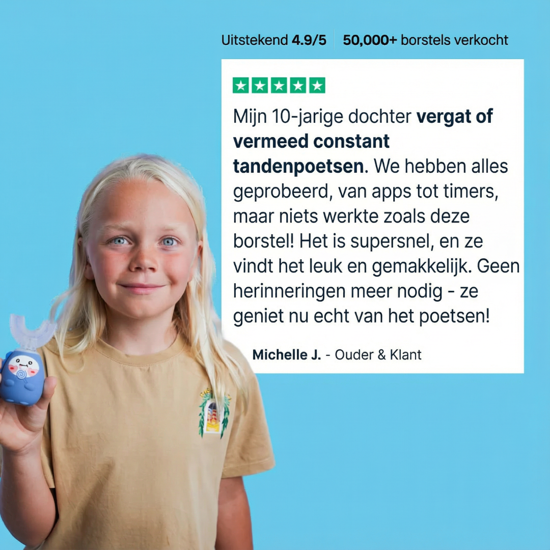 Waarom ouders hiervoor kiezen: 😁 Tandenpoetsen met een glimlach ✨ Verwijdert tot 4× meer tandplak 🦷 Ontwikkeld door tandartsen 🚚 Gratis verzending met PostNL