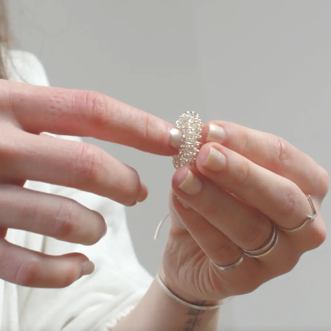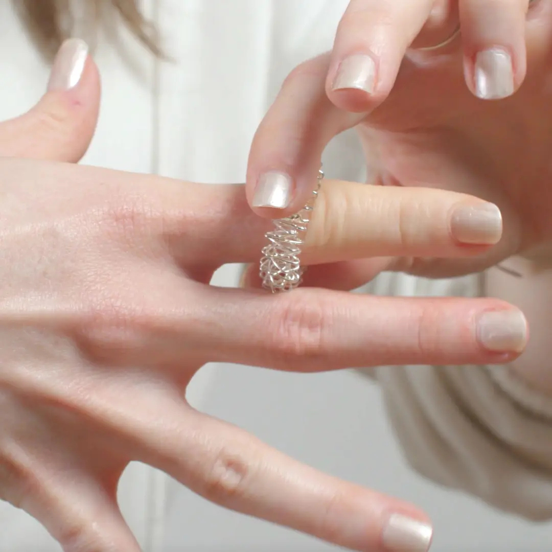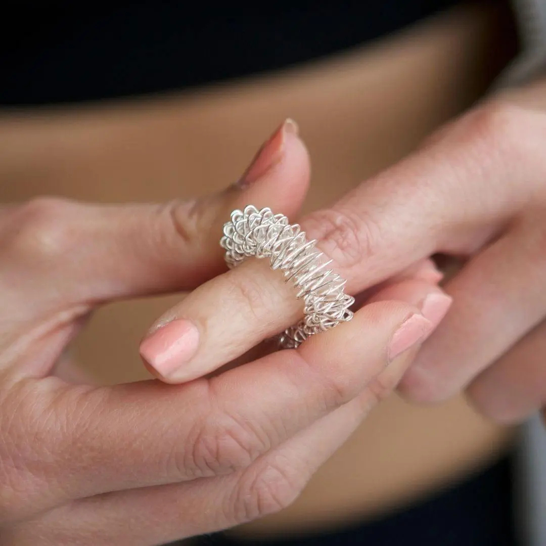 Acupressuurring: Snelle ontspanning en frisse focus, ideaal bij veel hand- of computerwerk.